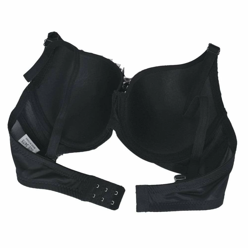 - This black bra is adorned with ravishing spikes stud that is very dominant and powerful