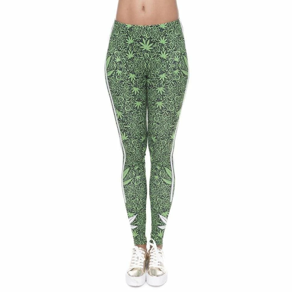 - Super fun and flattering marijuana leaf design printed all over the leggings.