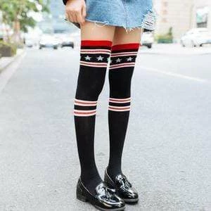 - Tired of your old boring socks? The Stripe Stars Over Knee Socks is a cozy and fashionable pair of socks that gives a different kick to your simple outfit ensemble. You can also wear this cute socks to keep you warm even you’re just at home