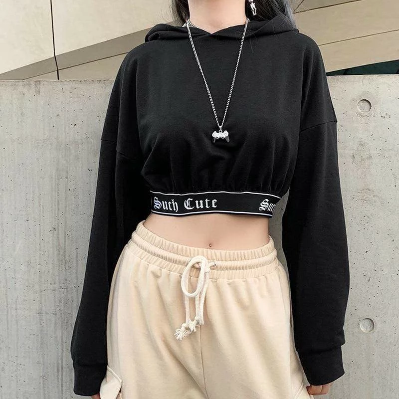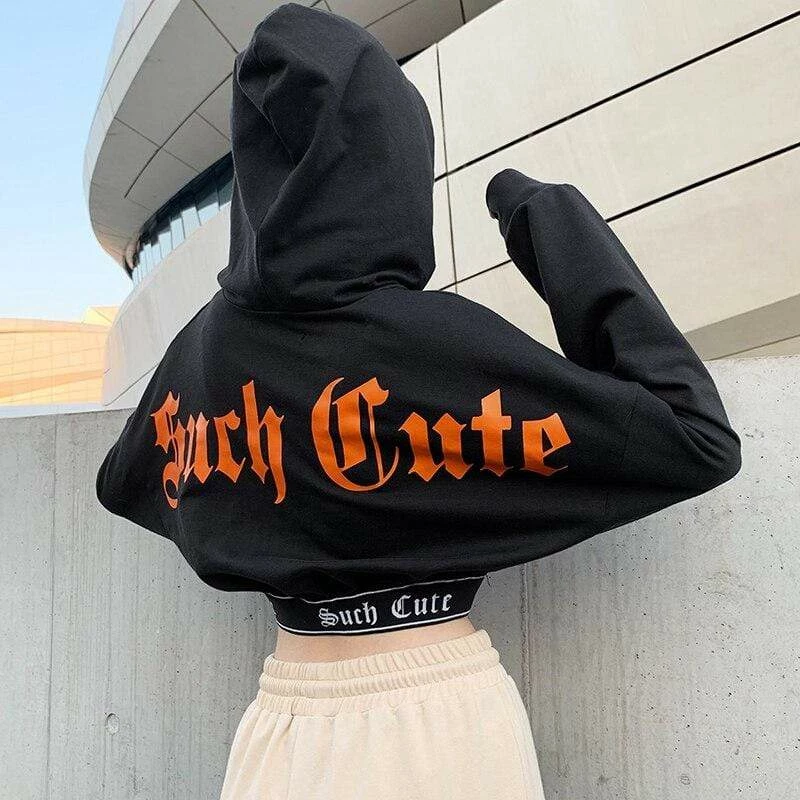 - So adorable! The Such Cute Gothic Crop Top Hoodie is a great kawaii statement hoodie that’s perfectly hot and witty at the same time. Funny and cute, perfect for the chic person that you are