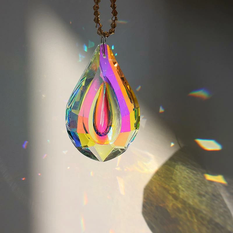 - Cast a beautiful colorful rainbow through this unique crystal tear drop prism.