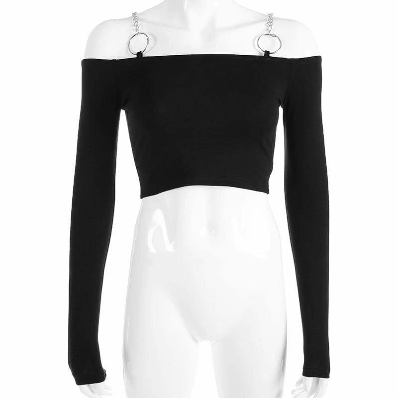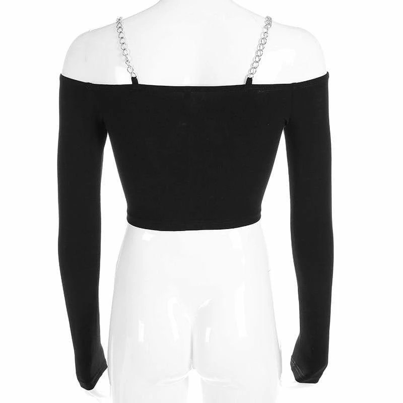 Kinky Cloth Top & Tees Chain Ring Long Sleeve Crop Top
