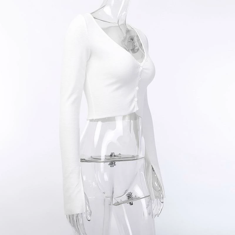 - Luxurious and coquettish. These Deep V Neck Long Sleeve Crop Tops will surely flatter your beautiful curves, while also minding your comfort