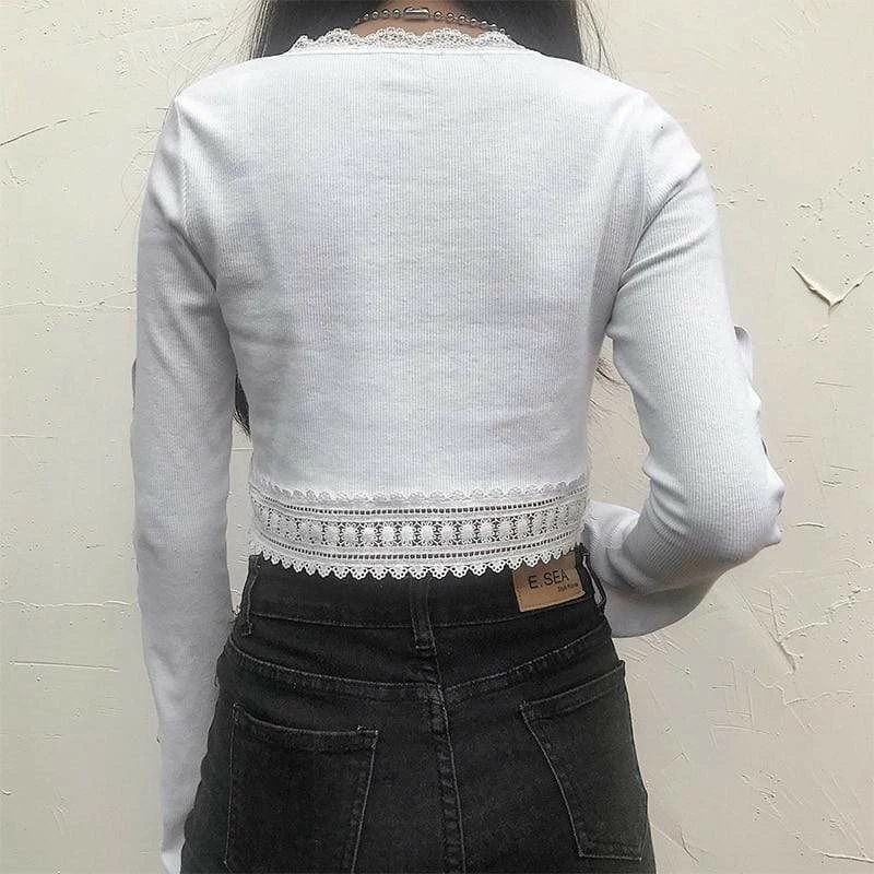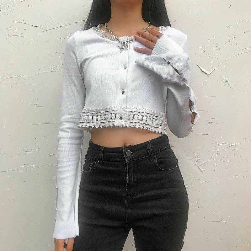 Kinky Cloth Top & Tees Lace Patchwork Open Sleeve Crop Top