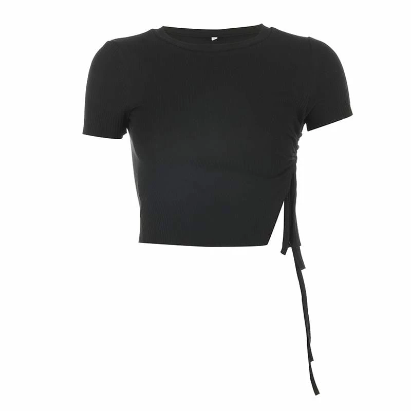 Kinky Cloth Top & Tees Side Split Drawstring Shirt