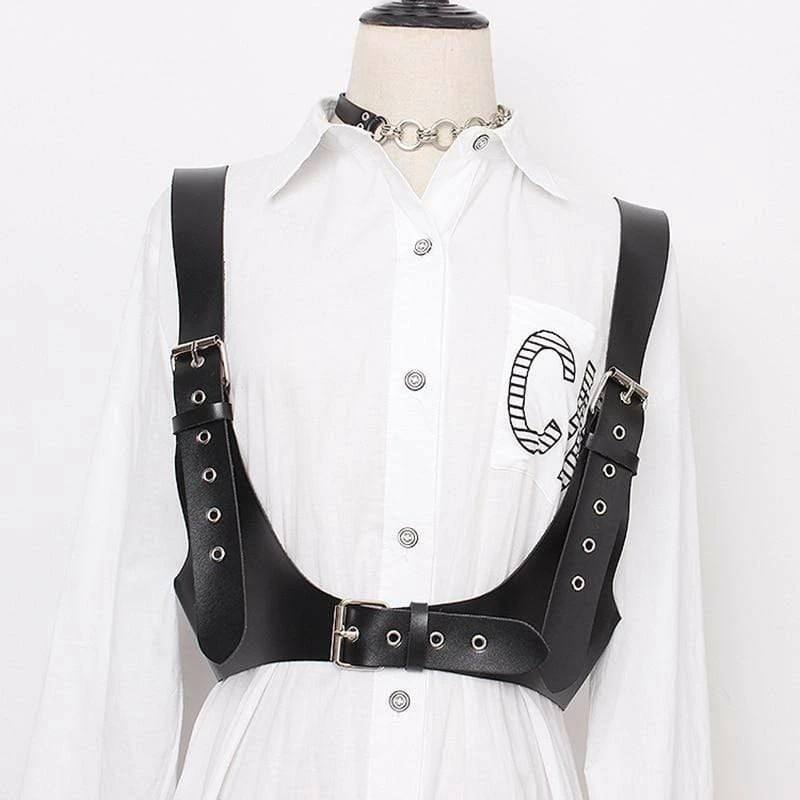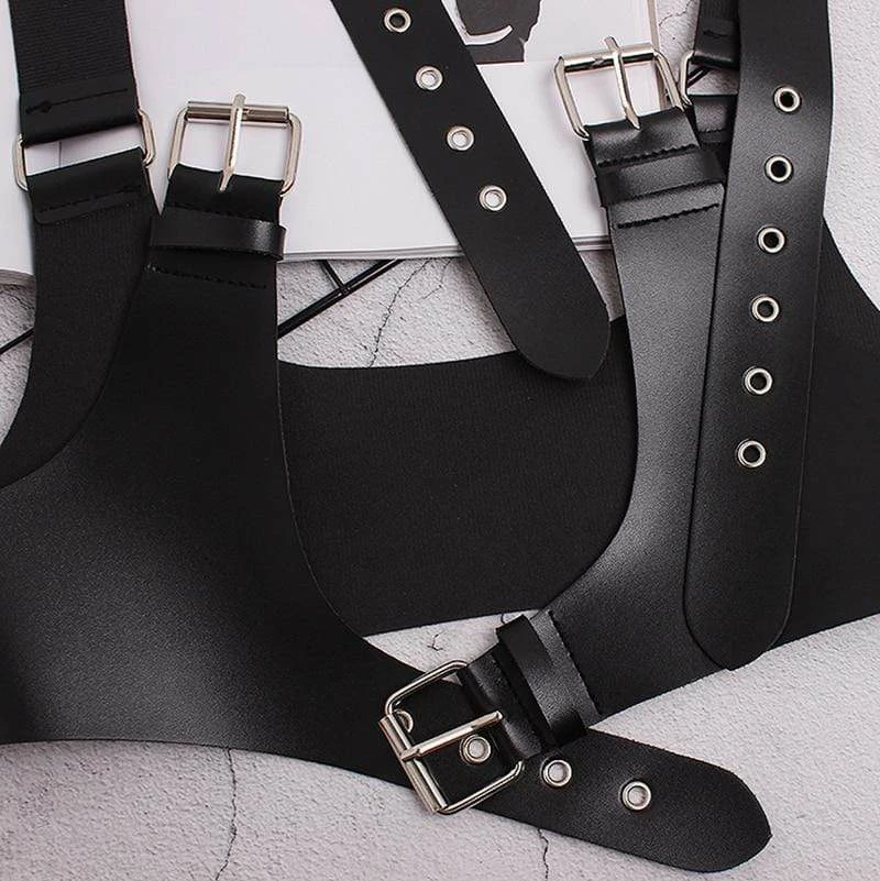 Kinky Cloth Wide PU Leather Strap Buckle Harness
